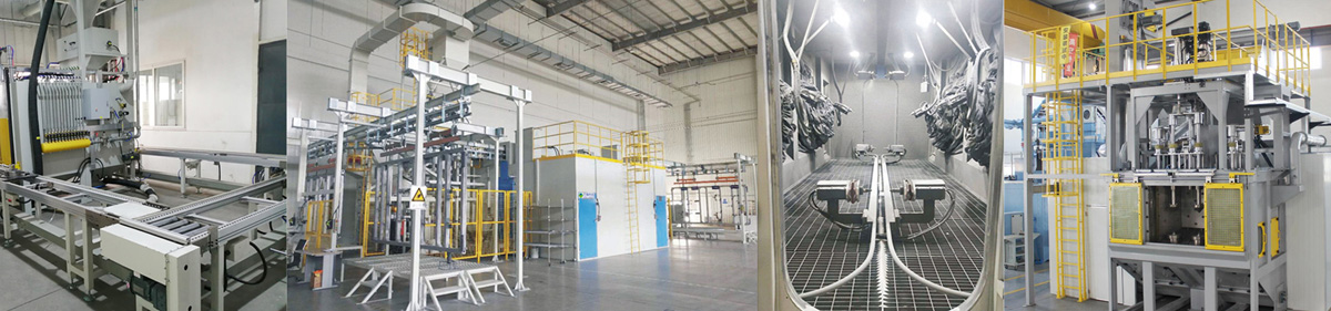 生產(chǎn)設備:樹脂砂鑄造、覆膜砂鑄造、失蠟鑄造、中頻電爐、爐前分析儀、退火爐等。